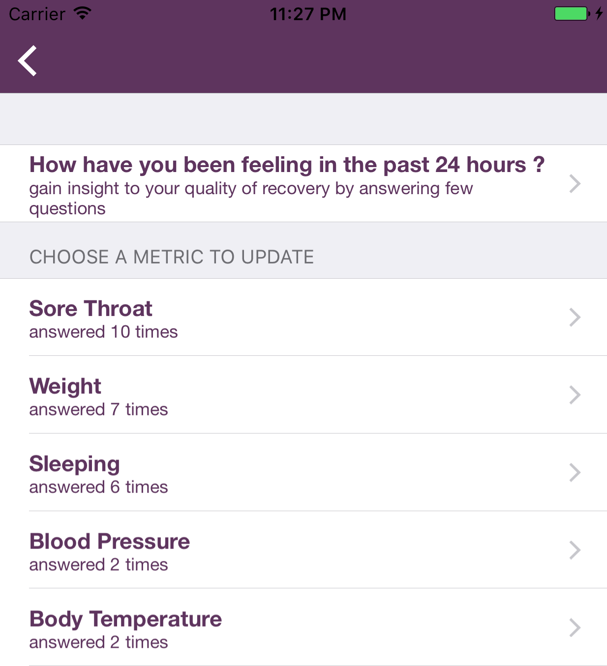 Find out how your sleep pattern, appetite or fever trend Recovery is designed to make tracking of your recovery compares with average from users in similar situation.