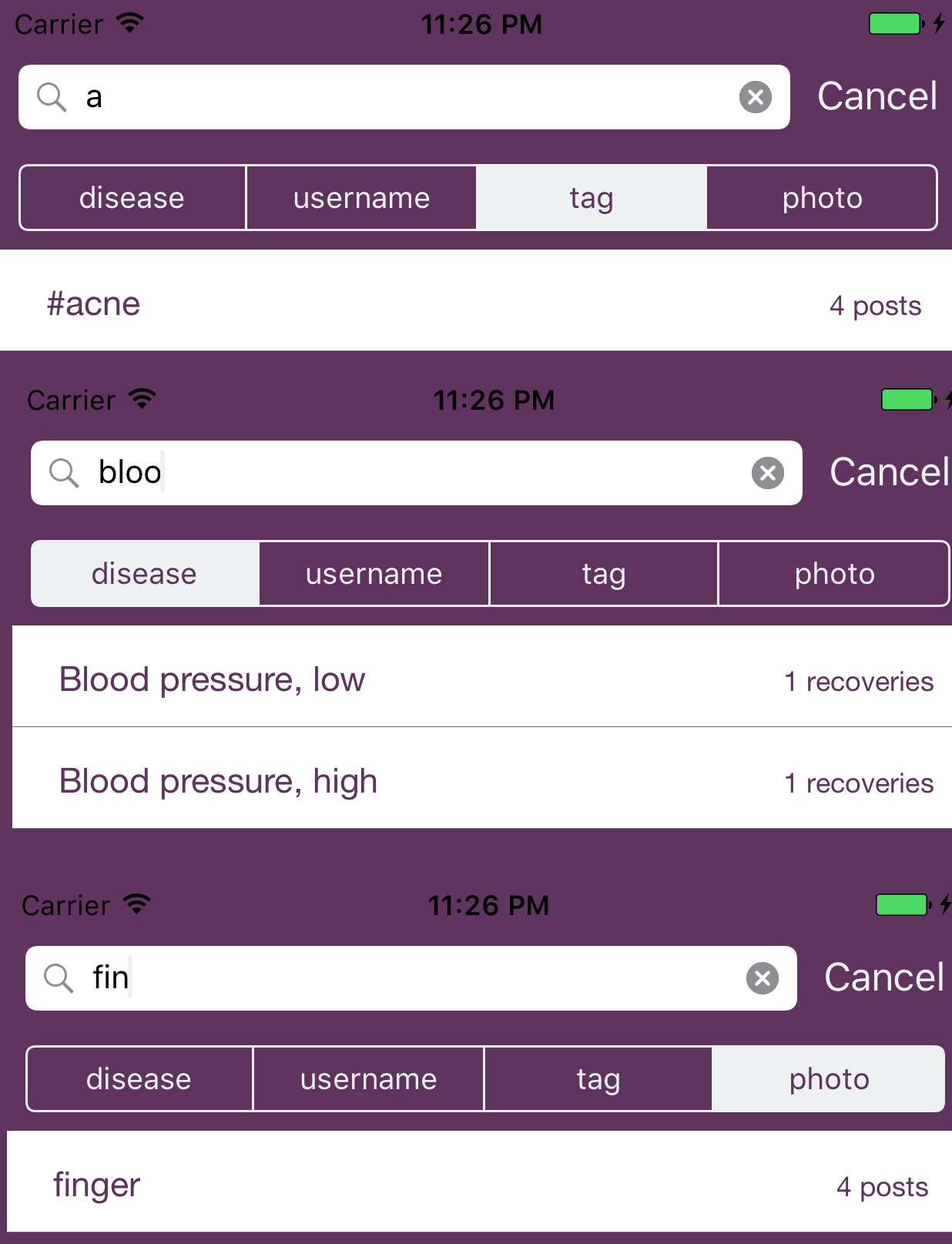 Capture medications, photos and metrics frequently and organize them by the disease and surgery type